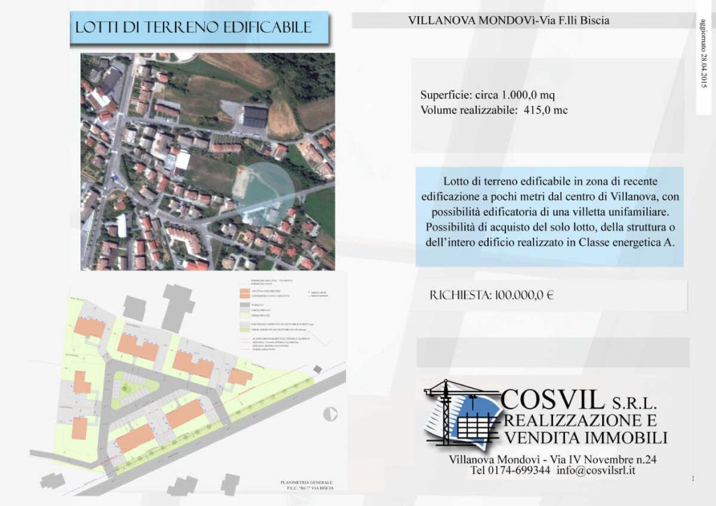 Lotto di terreno edificabile in zona di recente edificazione a pochi metri dal centro di Villanova, con possibilità edificatoria di una villetta unifamiliare. Possibilità di acquisto del solo lotto, della struttura o dell’intero edificio realizzato in Classe energetica A.